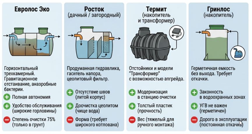 Сравнительная таблица — лучшие септики для загородного дома