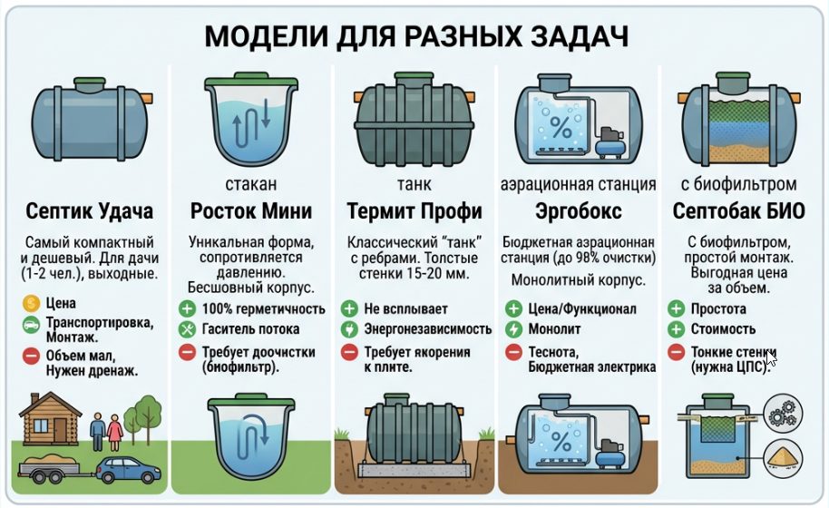 Сравнительная таблица — лучшие септики для дачи